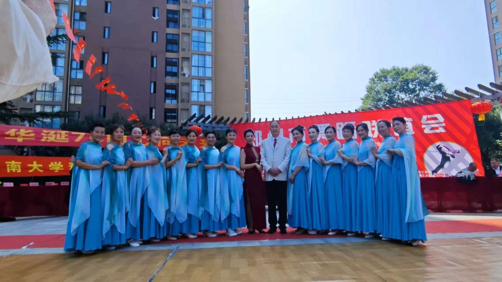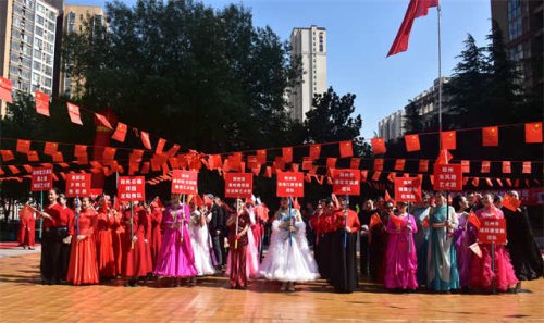 9月30日下午,由中国雷锋报红色文化艺术院主办,郑州市秦岭路悠园广场舞蹈艺术团、摩登舞交谊舞精英群承办的“普天同庆•万民同乐 庆十一大型舞蹈联谊会”在郑州市中原区金水西路与秦岭路交叉口的悠园广场盛装举行。来自郑州域内的郑州市秦岭路悠园广场舞蹈艺术团、摩登舞交谊舞精英群、冷枫舞蹈群、黄河国际标准舞群、东风路艺术团等近50支艺术团体参加了交流表演。