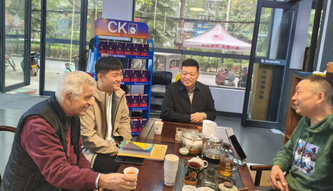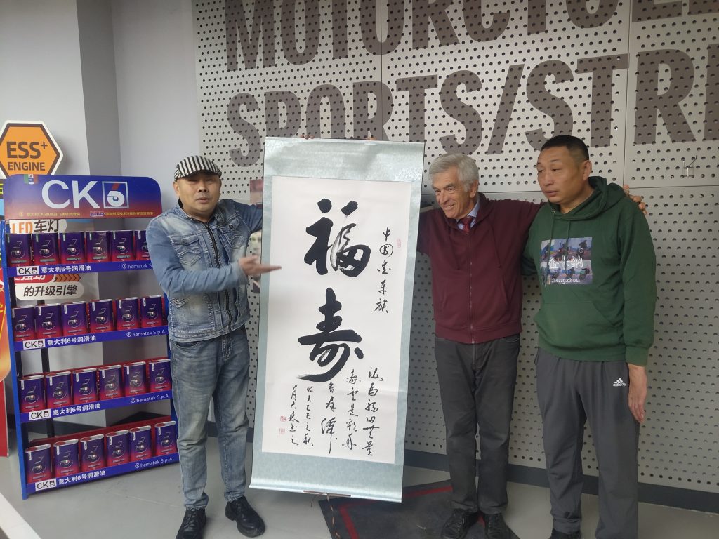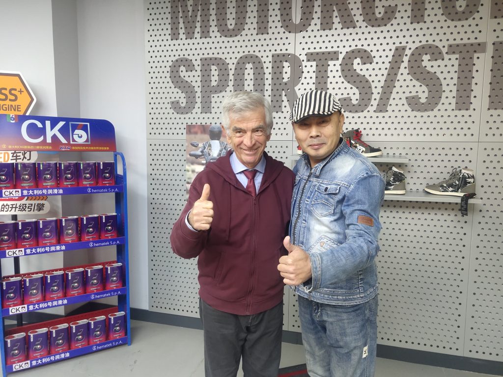 11月6日,意大利CHENMARK(CK6)润滑油技术总监Angel一行专程到访中牟新区爱车族门店,与门店老板李杰展开深度交流,郑州摩道商贸有限公司总经理王继峰陪同参与。