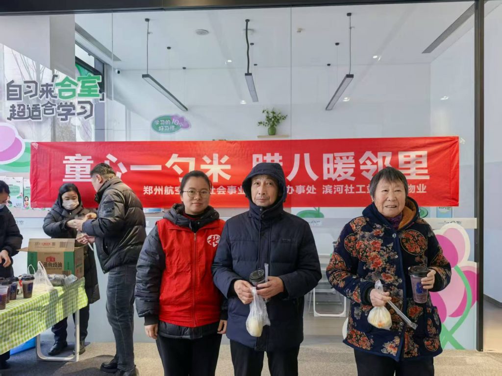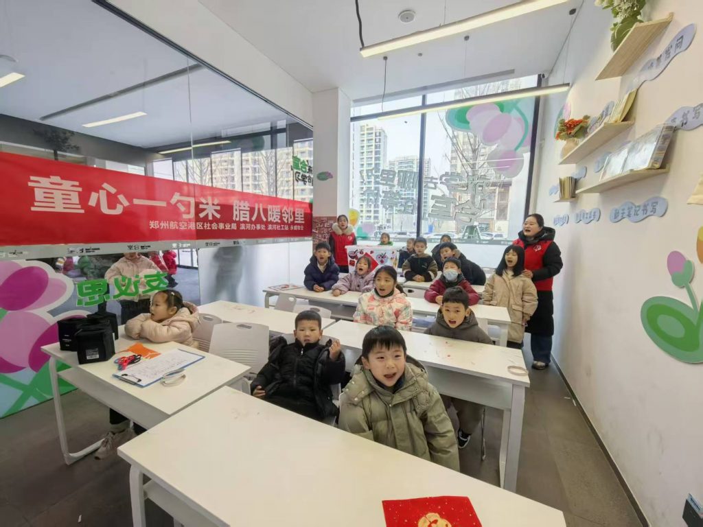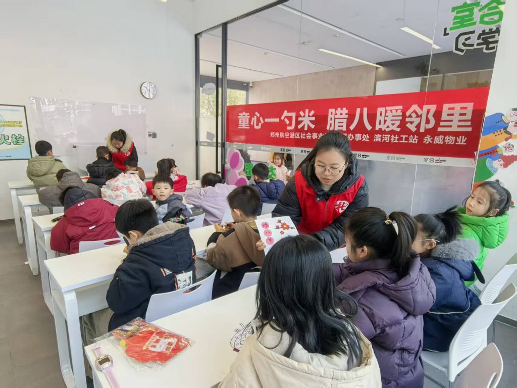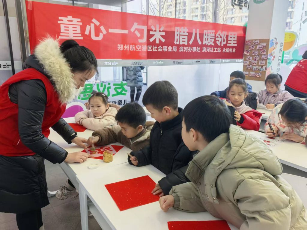 腊八至,粥香溢,邻里情暖满社区。1月26日清晨,寒意未消的永威南樾四期里,一抹抹童真身影与阵阵粥香交织成冬日里最暖的风景。在郑州航空港区社会事业局与滨河办事处的悉心指导下,滨河社工站携手归航路社区精心策划的“童心一勺米 腊八暖邻里”主题活动温情启幕。20余名社区儿童化身“米箱设计师”与“温暖动员官”,以一勺米为媒,用巧手筑情,让传统腊八节在邻里互助中焕发别样生机。