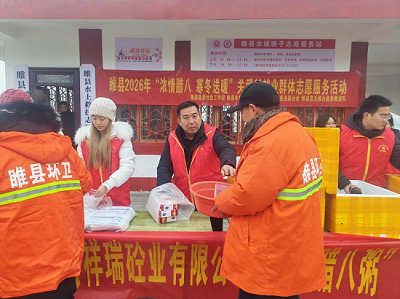 河南睢县讯(通讯员:王丽娜) 2026年1月26日,是我国的传统节日“腊八节”,为弘扬传统文化,营造浓厚的节日氛围,雎县蓝天综合应急救援队在睢县北湖景区南码头水城骄子志愿服务站开展以“浓情腊八 寒冬送暖”为主题的志愿服务活动。县相关单位领导、睢县蓝天综合应急救援队队员、睢县祥瑞砼业有限公司总经理李永及部分员工和返家乡的大学生志愿者们参加了此次活动。
