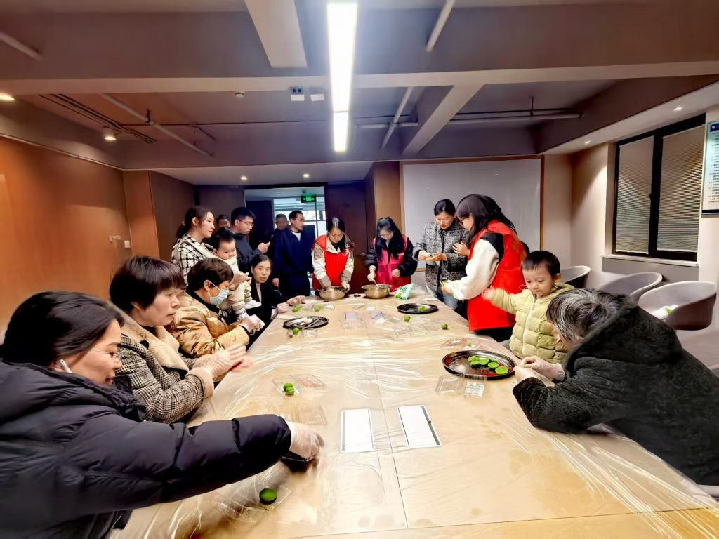 有的居民手法娴熟,一捏一搓间,圆润饱满的青团便快速成型;有的初次尝试,在邻里热心帮助下也渐入佳境。大家边制作边交流生活心得,欢声笑语萦绕在活动现场。不一会儿,一颗颗色泽鲜亮、软糯清香的青团陆续完成,淡淡的艾草香气弥漫四周,满是春日的温馨气息。“以前都是买着吃,今天亲手做青团,既有趣又有意义!”小区居民张阿姨开心地说道。