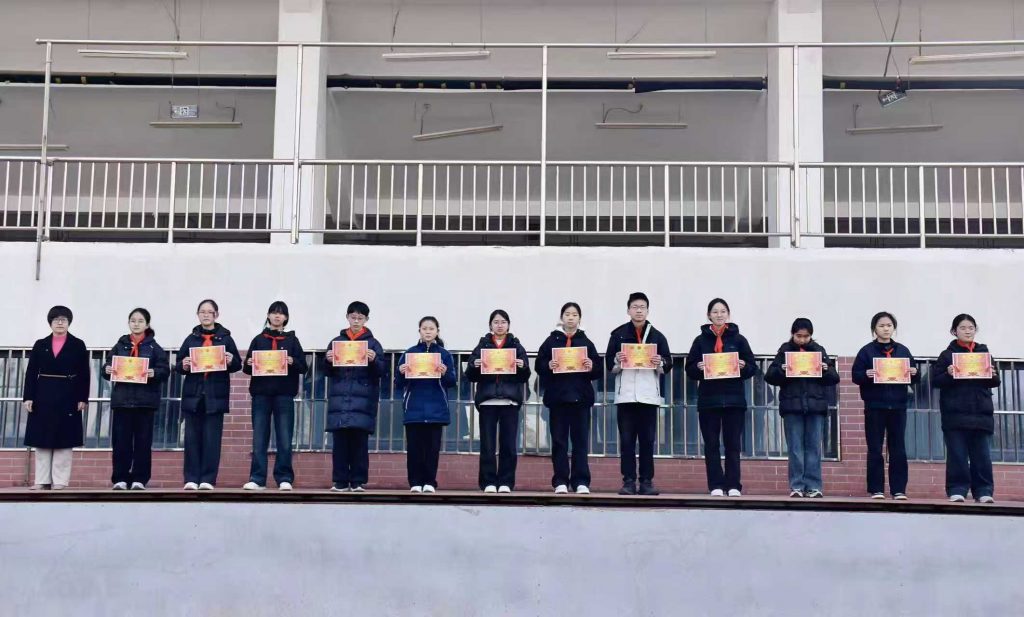 榜样引领前行,文明浸润校园。为树立身边标杆,激发学子奋进力量,学校对七八九年级蒋沐晴、焦亿晴、刘芊霖等36名优秀三好学生进行隆重表彰,各年级主任依次为获奖学子颁发荣誉证书。通过树立校园内可学、可做、可追的文明榜样,激励全体学生以先进为镜,自觉崇德向善、笃行实干,让文明之风浸润校园每一处角落。随后,七八九年级优秀学生代表张函静、张铈晨、陈妍汐携手登台发言,结合各年级成长特点分享学习感悟与成长心得,传递出全体学子以榜样为指引、严守校规校纪、践行文明新风的坚定信念,让榜样的奋进力量在校园内引发强烈共鸣。