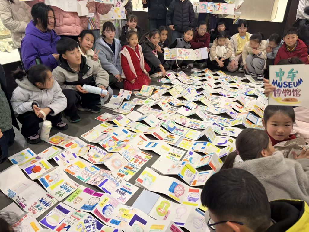 参观结束后,专业美术教师现场指导孩子们开展写生创作。同学们凝神构思、执笔描绘,在点、线、面的艺术表达中,捕捉文化遗产的独特韵味与传统底蕴,用画笔抒发对中华优秀传统文化的赞美与热爱。一幅幅灵动鲜活的作品,成为场馆内一道亮丽的风景线,引得不少游客驻足欣赏、频频点赞。
