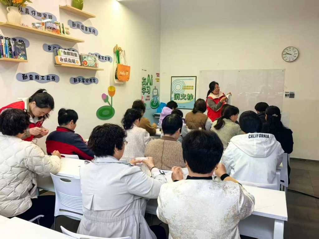 在实操环节,居民们个个兴致高昂,纷纷化身巧手匠人,精心挑选自己喜爱的面料色彩,全身心投入到手工创作中。大家穿针引线、认真缝制,时而低头专注操作,时而互相交流制作心得、分享缝纫小技巧,现场欢声笑语不断,邻里情谊在轻松温馨的氛围中悄然升温。经过一番精心制作,一块块普通的布料,在居民们的一针一线下,摇身变成一个个精致可爱、风格各异的大肠发圈,春日的灵动与美好被巧妙融入其中。