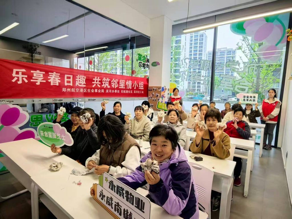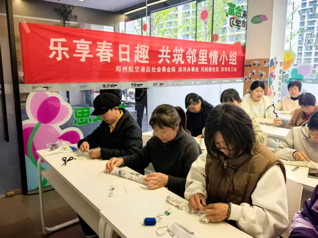 春风送暖,暖意融融,为进一步丰富辖区居民精神文化生活,搭建邻里互动交流的暖心平台,4月8日,在郑州航空港区社会事业局、滨河办事处的精心指导下,滨河社工站联合归航路社区,在永威南樾四期合室小课堂,顺利开展“乐享春日趣 共筑邻里情”小组第四节主题活动,本次活动以精美发圈手工制作为核心,带领居民用巧手定格春日美好。