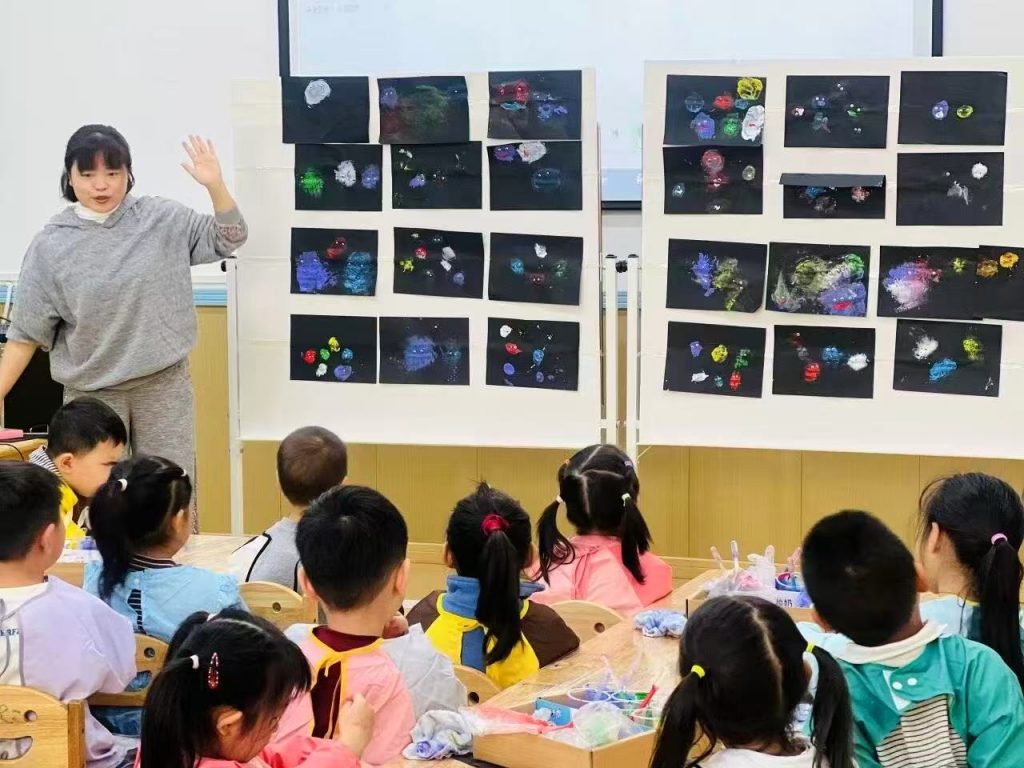 龙翔路幼儿园王薇老师借助《精灵大学》动画视频,引起幼儿的兴趣,让幼儿在玩色的过程发挥想象大胆创作。通过使用滴管、“小眼睛”贴等工具,在挤、拍、贴等玩色过程中创作出夸张的小精灵形象。既锻炼幼儿的手眼协调能力和精细动作能力,也体验了艺术创作的乐趣。琼花路幼儿园李晓楠老师的大班美术活动《斑马的魔法衣》以斑马为主角,引导幼儿观察斑马原本黑白条纹的外形特征。通过情境创设,激发幼儿大胆想象,为斑马设计图案多样的“魔法衣”。幼儿运用黑笔,尝试搭配不同线条以及图形元素表现独特的黑白创意画。平安路幼儿园姬庆荣老师的美术活动——《神奇的泡泡莲蓬》,带孩子们走进莲花的世界,认识莲蓬的形态和结构后,巧妙利用吹泡泡、刮泡泡的方法,变出形象的“莲蓬”,再用添画的方式完成创作。一幅幅栩栩如生的水墨莲蓬画让大家眼前一亮!紫寰路幼儿园王晶老师,在大班语言活动《大鱼》中,紧扣绘本“放鱼”与“抓鱼”的核心矛盾展开教学,悬念满满的情节贴合大班幼儿的思辨兴趣。