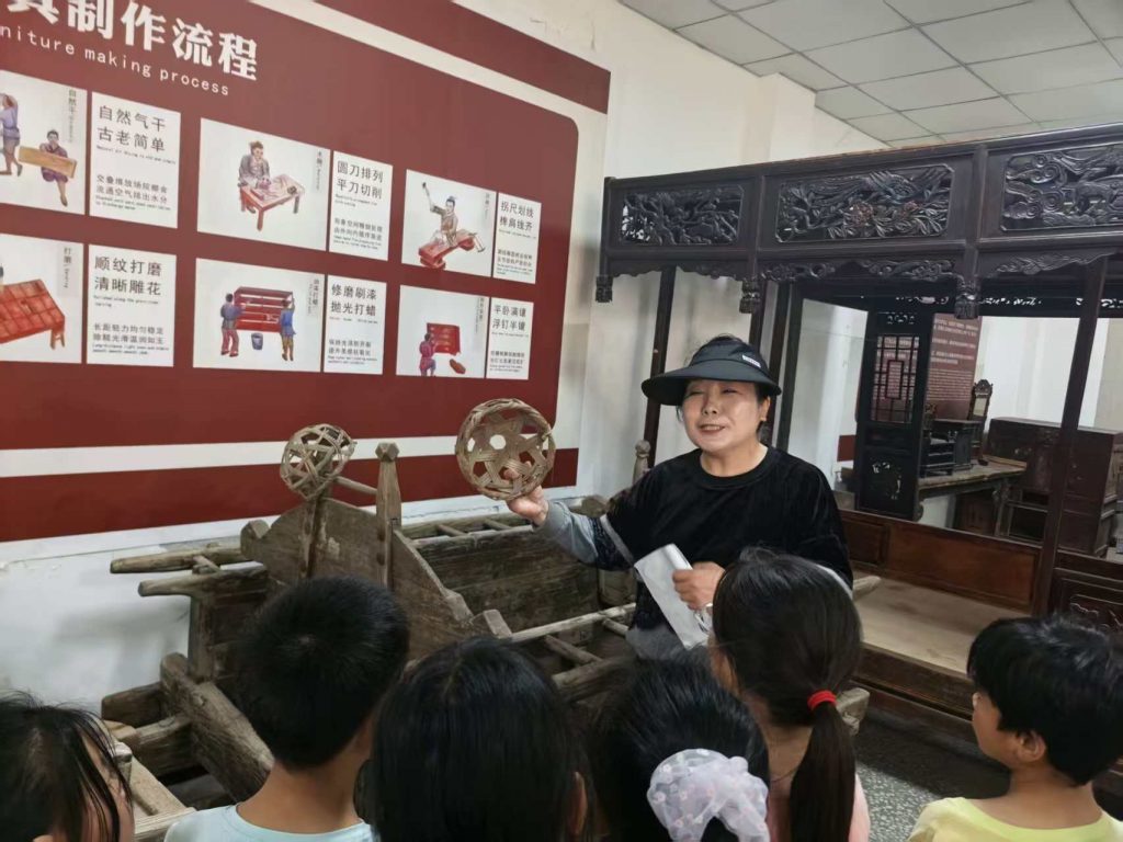 除了兵器类文物,清代木制冰箱、冉觐祖用过的古床、传统农耕用具等展品,也让学生们直观了解古代先民的生活习俗与创造智慧。从史前农耕文明的石磨盘、石磨棒,到明清时期的生活器具,每一件文物都如散落的历史碎片,拼凑出中原古代先民绚烂的生活图景。