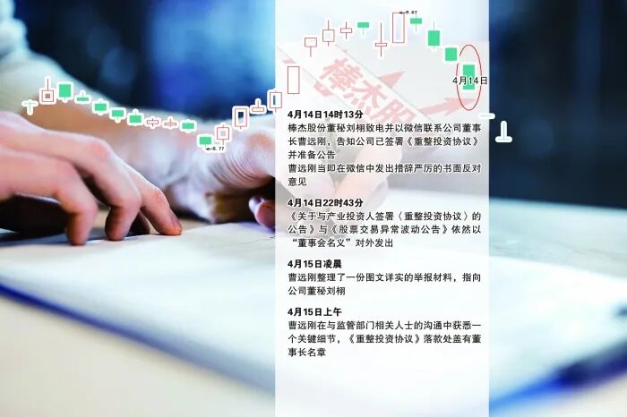 更让事件性质发生质变的是,4月15日上午,曹远刚在与监管部门相关人士的沟通中获悉一个关键细节,《重整投资协议》落款处盖有董事长名章。“那个印章我根本不知情,更从未授权任何人刻制或使用。这已经不仅仅是信息披露违规的问题了,涉嫌伪造印章,涉及刑事犯罪。”曹远刚说。