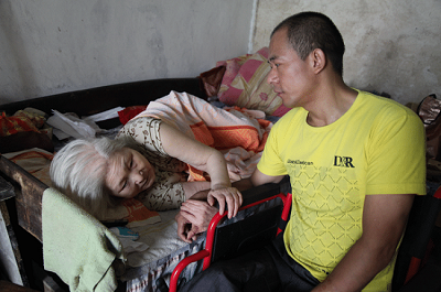 依靠轮椅自食其力并照顾年迈瘫痪的母亲