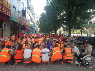 伊川爱心粥铺与就餐人员交谈