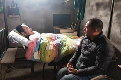 现年54岁的李灿学出生在河南省洛阳市伊川县彭婆镇李寨村。1996年因房墙倒塌被砸,导致他高位截瘫,大小便失禁,生活全得靠母亲照顾。面对人生巨大的落差他万念俱灰,自我封闭在8平米漏雨的陋室里长达8年。因家庭经济拮据,在充满尿骚味的屋子里,他只能仰卧在床上看书解闷,时间久了他便从从书中汲取到了很多知识,明白了做人的道理。他感到自己还很年轻,决不能就此倒下,应该像一个顶天立地的男子汉,勇敢地为家庭和社会承担自己的一份责任。