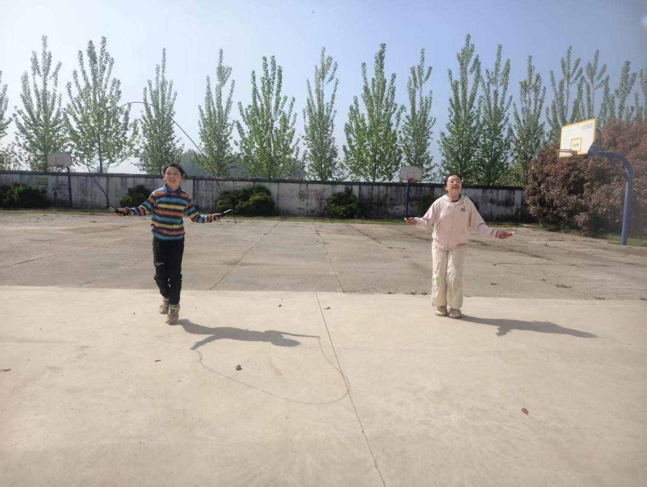 跳绳社团活动中,一根根彩绳在空中飞舞,跳绳落地的清脆声响与同学们的喘息声、欢笑声交织在一起,奏响了活力满满的运动乐章。孩子们紧握绳柄,踮脚、跳跃、落地,动作连贯流畅,认真专注地完成每一次跳跃,展现出扎实的运动功底,每一次腾空跳跃,都彰显着少年儿童的蓬勃朝气与坚韧毅力。